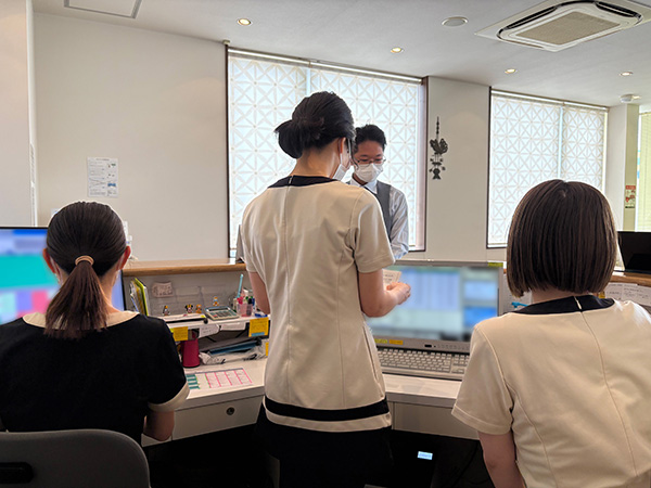 来院された患者様が最初に接するのが受付です。お子様も多く来院される当院の窓口として、明るい笑顔と丁寧な対応ができる方を歓迎しています。