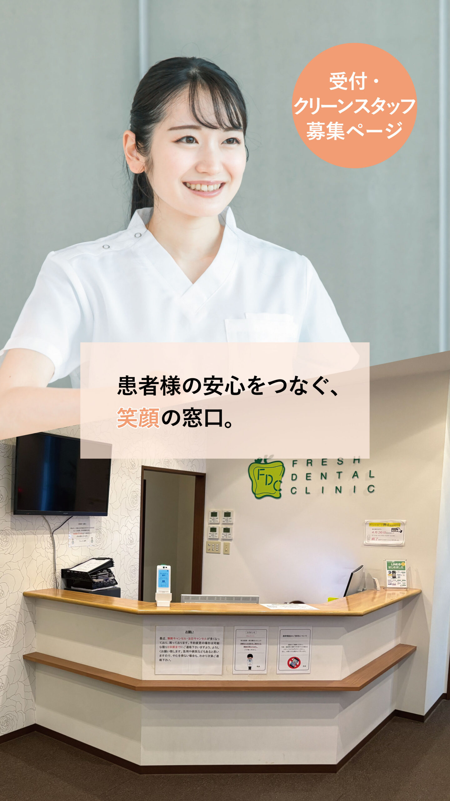 | 募集職種 | 【フルタイム正社員】 受付・クリーンスタッフ |